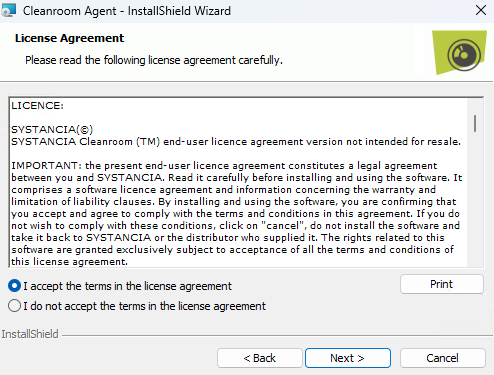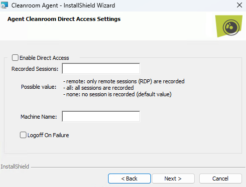 setup_CleanroomAgent.execonfiguración en la máquina donde desea instalar el agente de grabación. - Haga clic en