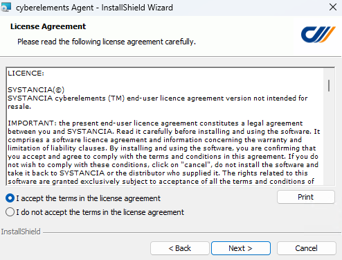 setup_cyberelementsAgent.execonfiguración en la máquina donde desea instalar el agente de grabación. - Haga clic en