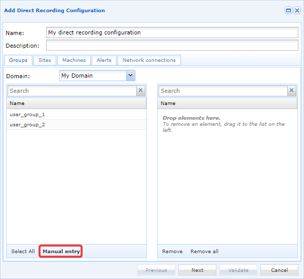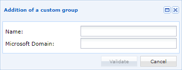 Después de hacer clic en el botón de añadir manual, aparecerá una nueva ventana para recuperar el nombre del grupo y su dominio:
