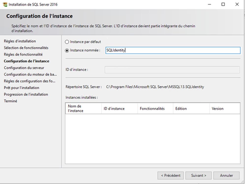 Crear una instancia con nombre (ejemplo: SQLIdentity)