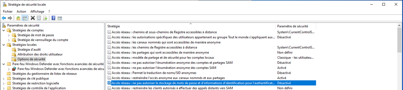 - En la configuración de red, la opción Acceso a la red: no permitir contraseñas y credenciales para la autenticación de la red debe estar desactivada: