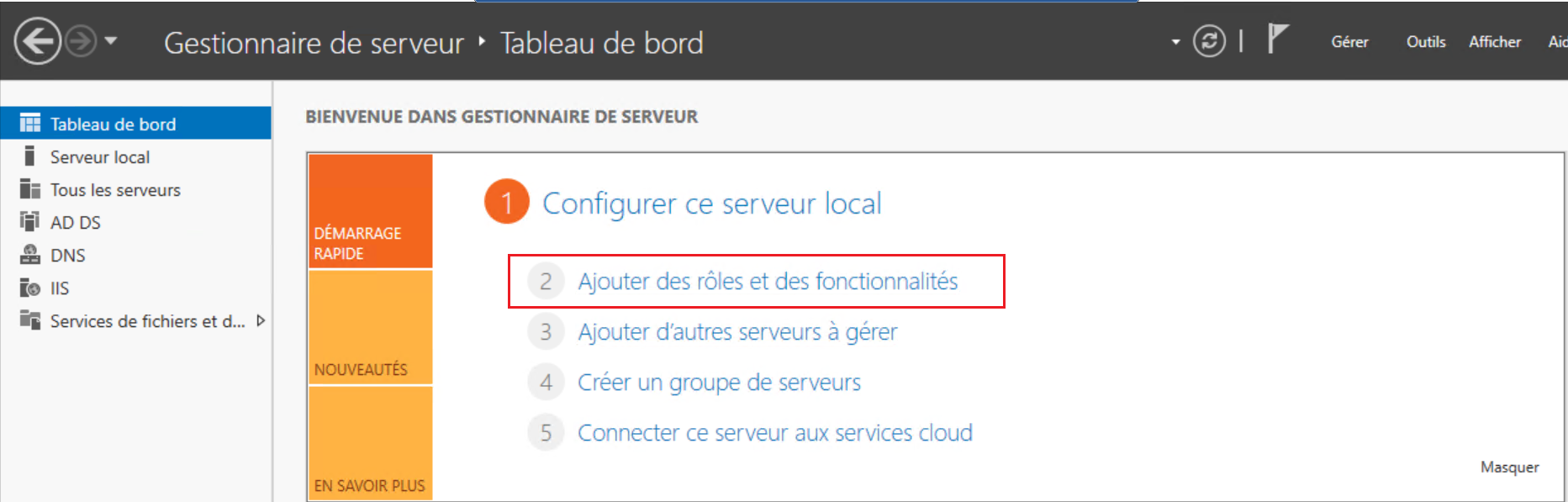 Desde el administrador del servidor, vaya al menú Agregar funciones y características.
